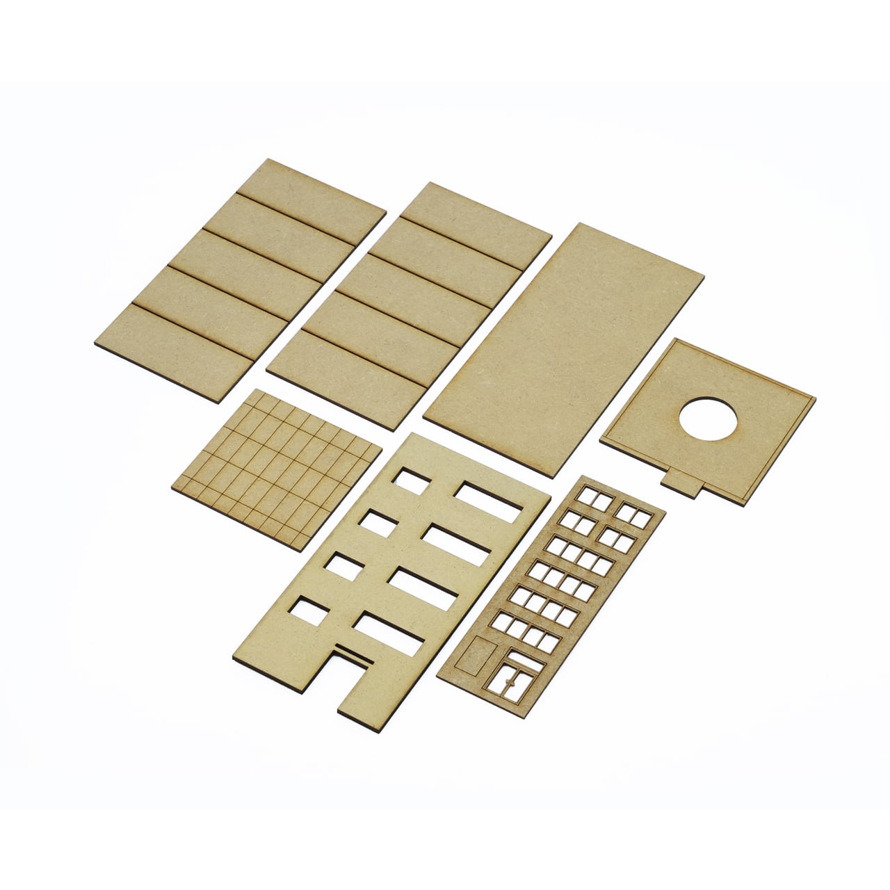 MDFボードで出来た5階建てビルの組み立てキットです。